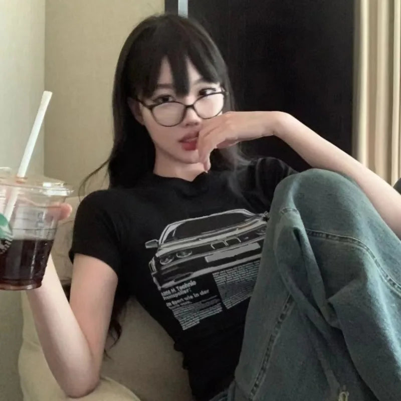 This American Retro Y2K Print T-Shirt adds a trendy touch to your casual wardrobe, combining comfort with a stylish nod to the past. Crafted from a soft cotton and polyester blend, this casual tee offers comfort and versatility for everyday wear.